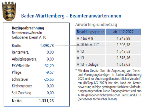 Anwärtergrundbetrag für Beamtenanwärterinnen und Beamtenanwärter des Landes Baden-Württemberg ab 01.12.2022